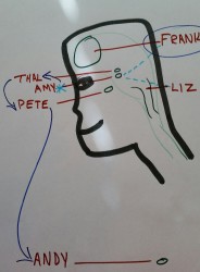 NOTE: Because we often grasp things better visually, in a face-to-face session this story is accompanied by a rough drawing. Rough being the operative word here! Obviously, I am not in the group of people who have significantly “more grey matter in an area of the brain called the precuneus in the parietal lobe.” We call them Artists. * <smile>